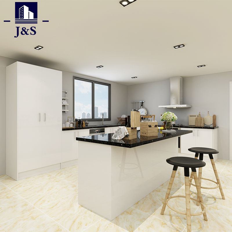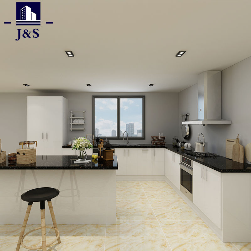 J&S furnizează dulapuri de bucătărie cu design alb în stil modern, două pachete de bucătărie. Este un design popular și economic pentru majoritatea țărilor.