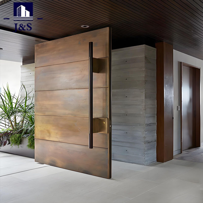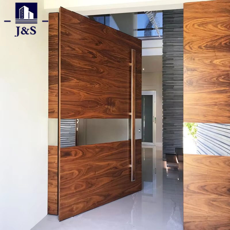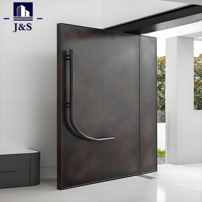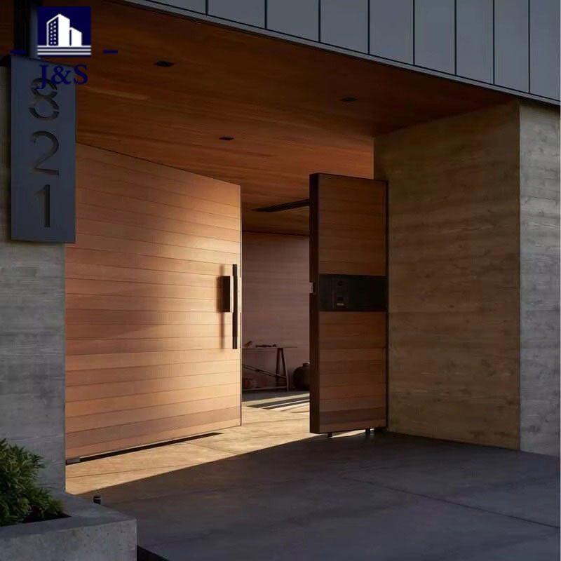 Aceasta este o ușă exterioară din aluminiu pentru vilă modernă, cu un design pivotant elegant, combinând estetica minimalistă și funcționalitatea robustă. Fabricat din aluminiu de calitate superioară, cu un finisaj cald cu veacul lemnului, imită textura naturală a lemnului, păstrând în același timp durabilitatea, rezistența la intemperii și întreținerea redusă a aluminiului. Lambriurile orizontale late și mânerul lung și negru vertical creează un aspect îndrăzneț, contemporan, ideal pentru vilele de lux. Balamaua pivotant permite o deschidere lină, fără efort, în timp ce panourile laterale din sticlă transparentă asortate maximizează lumina naturală și conectează interiorul cu peisajul exterior. Ușoară, dar puternică, această ușă din aluminiu oferă o securitate excelentă împotriva pătrunderii forțate, rezistență la coroziune și performanță pe termen lung, ridicând perfect atractivitatea exteriorului rezidențial modern.